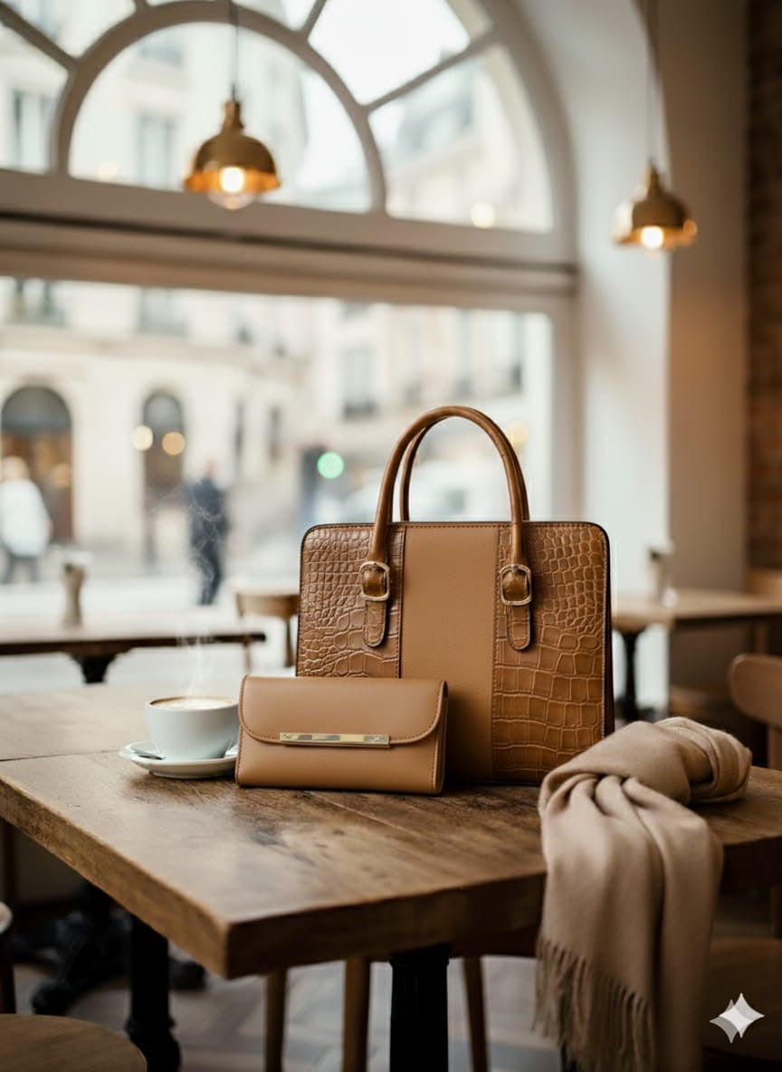 👜 Crafted from premium faux crocodile leather in elegant caramel brown & black contrast