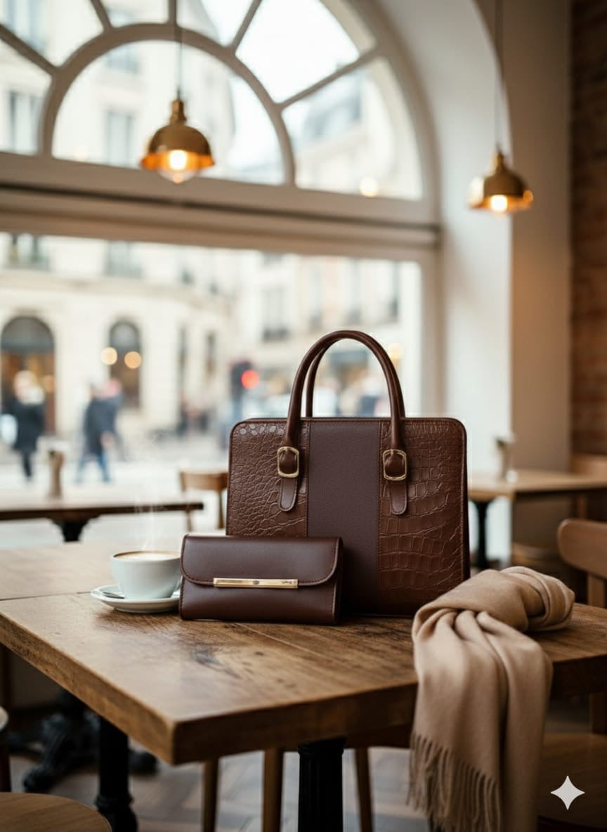 👜 Crafted from premium faux crocodile leather in elegant caramel brown & black contrast